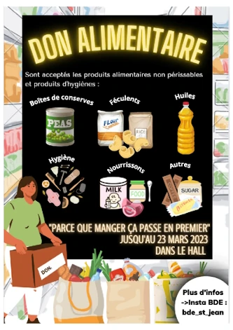 Le BDE Saint Jean se mobilise en faveur des associations salonnaises et organise une collecte alimentaire jusqu'au 23 mars 2023.